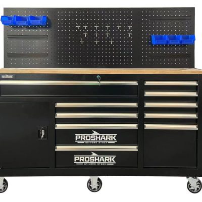 Servante établi XXL 160cm vide avec 10 tiroirs + placard et panneau arriere Pro Shark