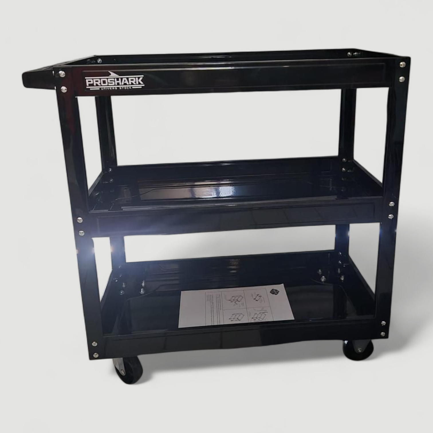 Cette desserte d’atelier 3 étages noir, de la marque Proshark trouvera facilement sa place dans votre atelier, garage ou tout autre endroit où elle se rendra utile.