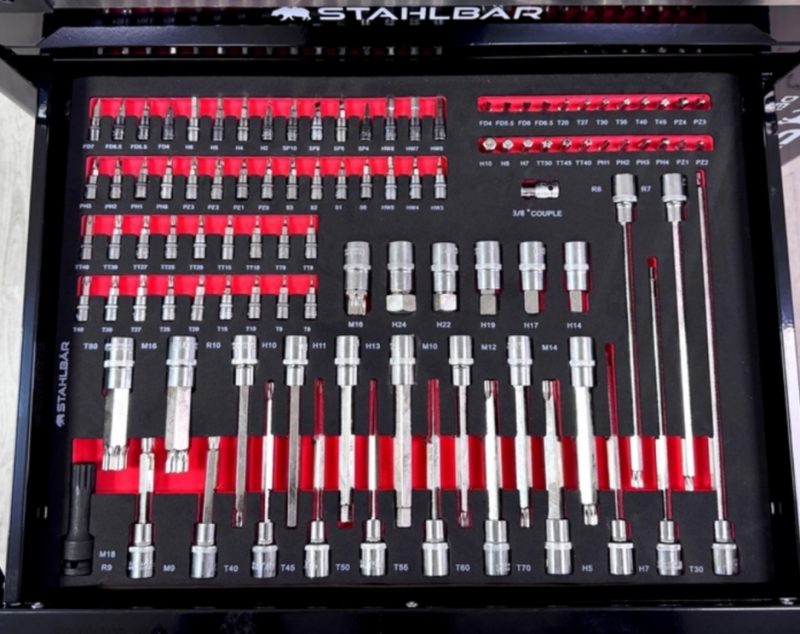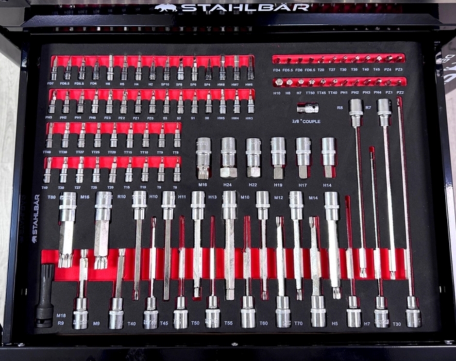 • 2e tiroir : assortiment d’embouts torx btr 6 pans 12 pans pour les 3 tailles de cliquets