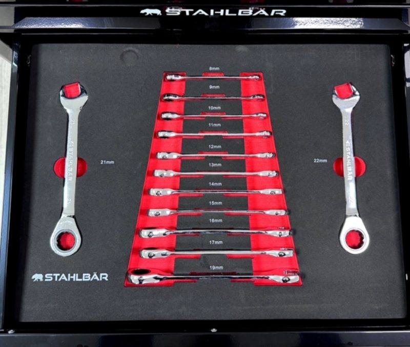 • 3e tiroir : lot de clés plates de 8 à 22mm à œil cliquet