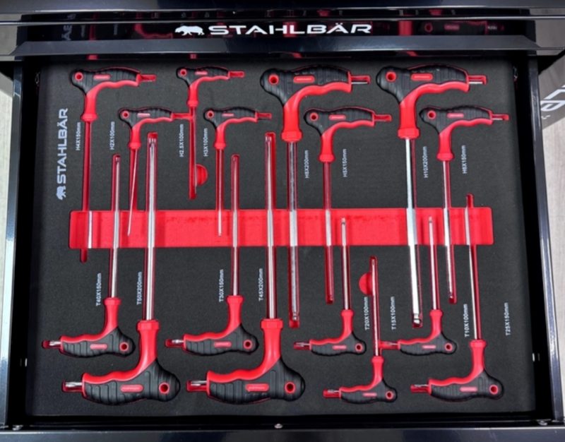 • 5e tiroir : assortiment de clefs en T torx et BTR