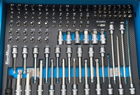 • 2e tiroir : assortiment d’embouts torx btr 6 pans 12 pans pour les 3 tailles de cliquet