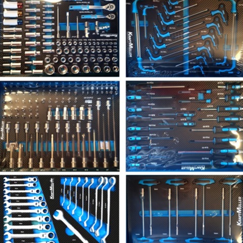 Les modules sont en mousse moulée noire pour un rangement optimal des outils et un look raffiné.