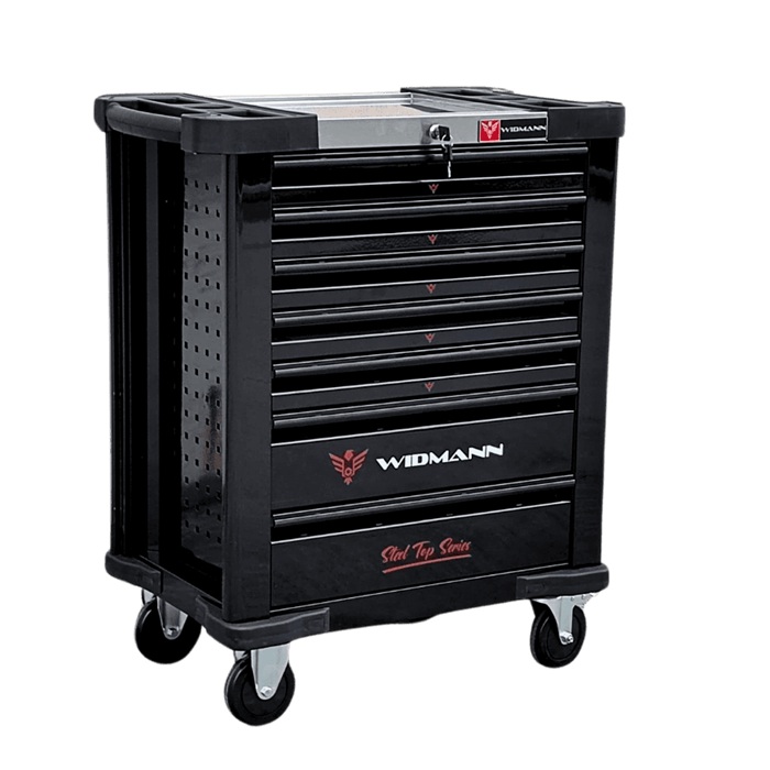 De haute qualité, avec une belle peinture vernie et des tiroirs à doubles glissières à billes et ses 2 roues directrices freinées plus 2 roues fixes, cette servante d’atelier est indispensable dans votre atelier ou garage.