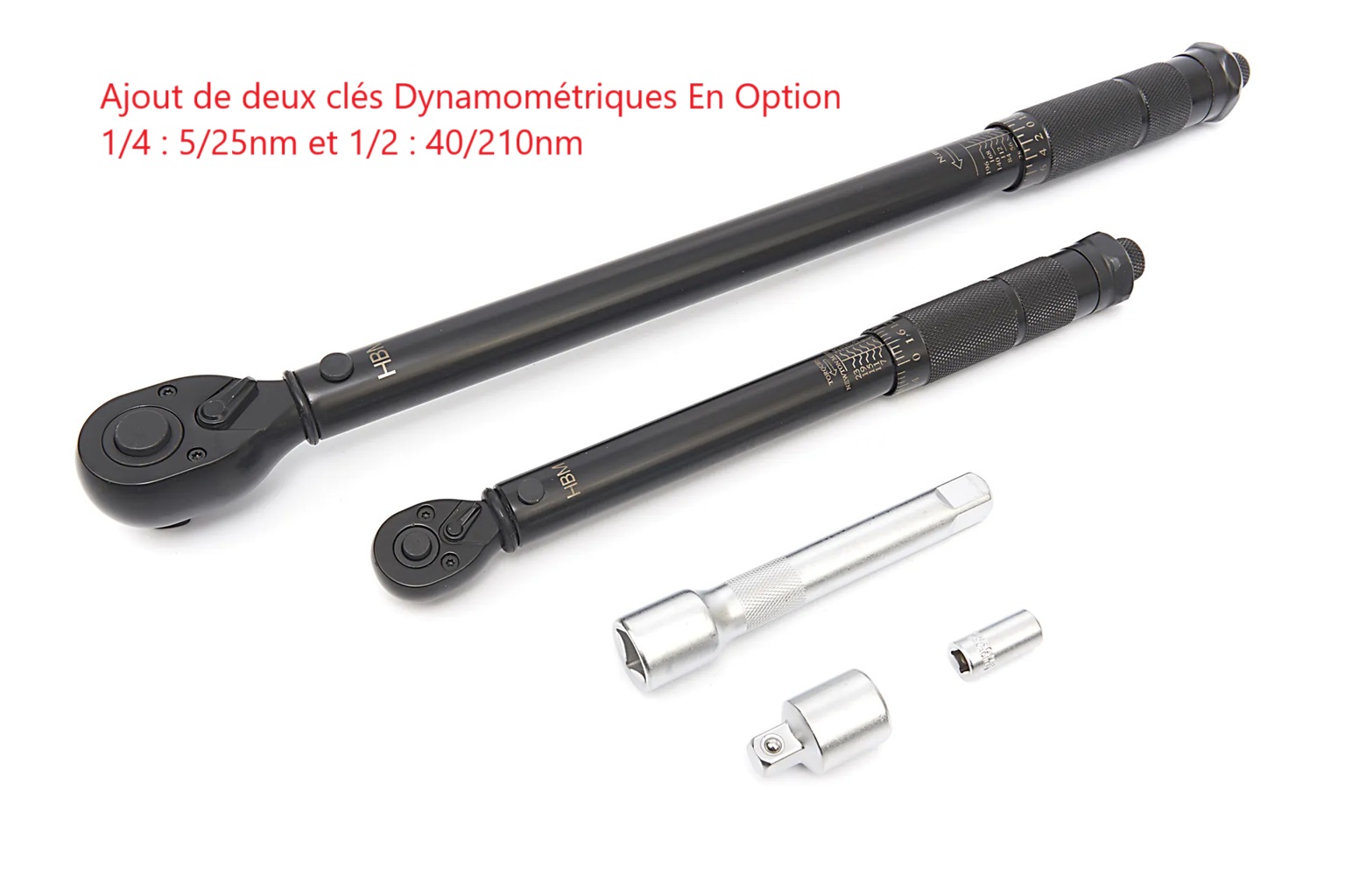 • 2e tiroir : assortiment d’embouts torx btr 6 pans 12 pans pour les 3 tailles de cliquets