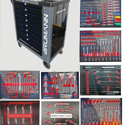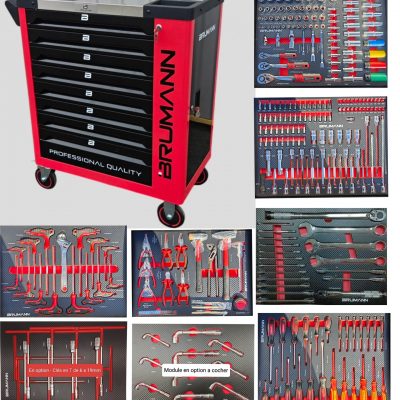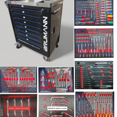 Servante Atelier Brumann 8 tiroirs 6 remplis d’outils + placard latéral + 2 clés dynamométrique – Rouge