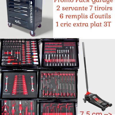 Pack Garage 2 Servantes Stahlbar 7 tiroirs 6 remplis + 1 cric extra plat Dstoolpro 3 Tonnes