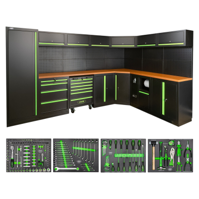 Mobilier d’atelier d’angle modulaire XXL JBM 7 éléments + servante 172 outils – 9 coloris